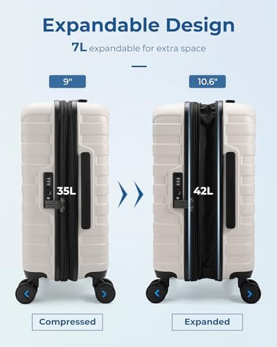 20% Upgraded Bigger Expandable Design: The checked luggage is ingeniously designed with two main compartments and features the buckle compression system, keeping your clothes neatly arranged. The travel suitcase comes with a zippered mesh pocket for quick access to essentials, and a built-in small pocket for small items. Pulling open the zipper can expand by 1.6 inches, adding an extra 7L of space, with a large capacity of 42L, helping you pack more items and keep your travel items organized.