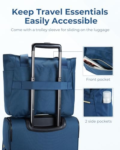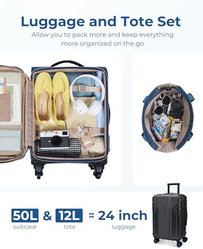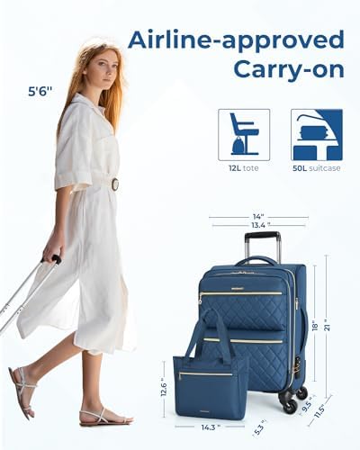 Airline-Approved Boarding Size: Carry on luggage 22x14x9 airline approved meets most airline requirements for overhead compartments. Suitcases with wheels are suitable for 3-5 day air, train, or road trips. Carry-on luggage is upgraded with a double-ended zipper and side-mounted TSA-approved lock for added security and to ensure smooth airline baggage screening. It measures 21x14x9″ with wheels and weighs only 7.83 lbs. Tote Bag that fits under the airplane seat measures: 14.3×5.3×12.6″.