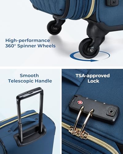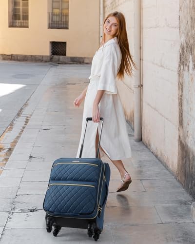 Getting Around Is Easy: Luggage sets for women come with an ergonomic Grade 3 aluminum tubular handle and are available in a variety of heights while minimizing wobble for your comfort. With 360° swivel wheels, the suitcase set is quiet and durable, making it easy to navigate airports, train platforms, sidewalks, and more. Womens luggage set made of quilted durable polyester fabric offers a sturdier base that allows it to glide easily, even when fully loaded.