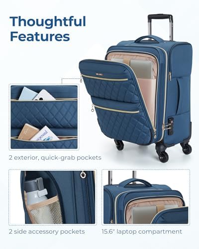 Upgraded 11% Bottom Expandable Design: The softsided expandable luggage unzips to expand by 2 inches at the bottom, providing 45L and an additional 5L of expanded capacity. The interior of the carry on suitcase has huge main compartments with a buckle compression system to keep your travel items organized. The interior of small rolling suitcase comes with a zippered utility pocket for small items. The travel suitcase expands to a massive 50L capacity to help you hold all your travel essentials.