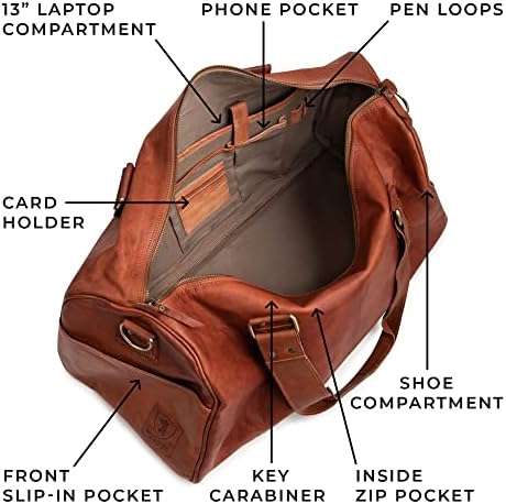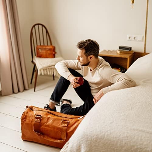 ⭐VINTAGE STYLE. This large travel bag adds retro chic to every situation. The 6 metal feet protect your bag from wear. We only use 100% metal YKK zippers, with stylish Berliner Bags branded pullers. Carry it by its sturdy handles, or sling it over your shoulder with its detachable strap! 🎁 As a special gift we’ve included a genuine leather luggage tag, so you can personalize your bag and keep your belongings safe 🎁