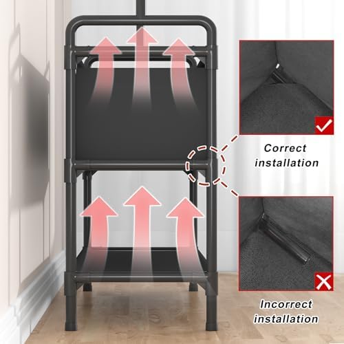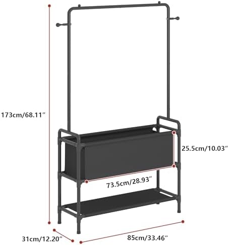 【Space Saving】Size: 33.46”L x 12.2″W x 68.11″H/85 x 31 x 173cm. The clothes rack make the best use of limited space and keep your room clutter-free and organized.