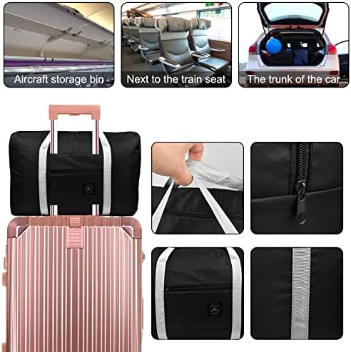 ✅ Packable & lightweight:Folding up when not use. Its external storage pocket offers quick access to small items. The pouch as a strap enables the duffel to fit over the handle of common suitcase 18 20 24 26 28 32 inch for easy carrying.