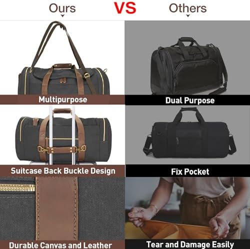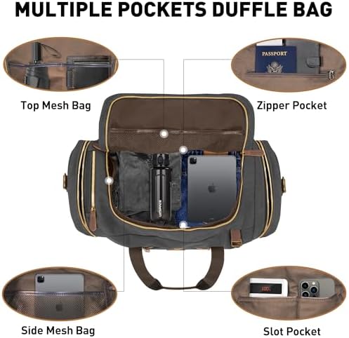 【Upgrade Details】A cover is added to the top of the duffel bag, which can be effectively water repellent and keep the inside dry and clean. Hidden straps at the top make this duffle bag a backpack. The suitcase back buckle is convenient for travel, please note that it is also suitable for airplane luggage. The design of the duffle bag is a main compartment with 4 pockets and 1 top mesh pocket inside, 1 front pocket, 1 side pocket and 1 shoes compartment on the outside.
