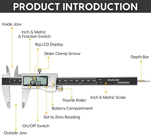 【UNIT CONVERSION & LARGE LCD SCREEN】These Digital Calipers have a one-key button to quickly switch from inches (inch), fractions (F), millimeters (mm). The 6″ digital caliper has a large LCD DISPLAY which is easy to use and read. What’s more, it will automatically turn off after 5 minutes of non-use to save power.