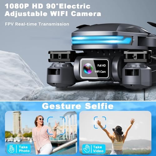 【Real-time Image Transmission and HD Photography】This small drone is equipped with an HD 1080P camera to capture stunning photos and videos with high quality and frame rate. The camera angle can be adjusted remotely up to 90 degrees. Combined with the upgraded hover system and optical flow positioning technology, the camera drone is more stable when shooting. Wi-Fi real-time transmission enables quickly sharing happy moments with family and friends.