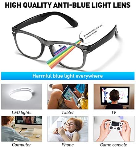 [LightWeight,Durable] DYLB kids anti blue light glasses are made of light weight TR90 material. The flexible computer glasses can fit kids well, the durable and light weight frame don’t make kids feel uncomfortable after long-time wearing.