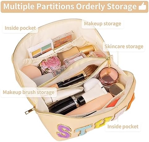 【Excellent Gift Choice】- Whether for friends, loved ones, family members, birthday parties, bridesmaids, Valentine’s Day, anniversaries, Thanksgiving, Halloween, or Christmas, this waterproof and personalized Chenille letter nylon makeup bag is an excellent gift choice. It is the perfect companion for beach vacations, pool parties, or organizing cosmetics and belongings at home. Its spacious capacity and stylish practical design make it an irresistible and perfect gift.
