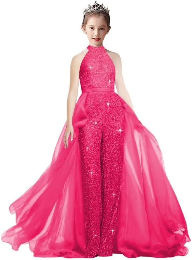 Girls Jumpsuits Pageant Dress Halter