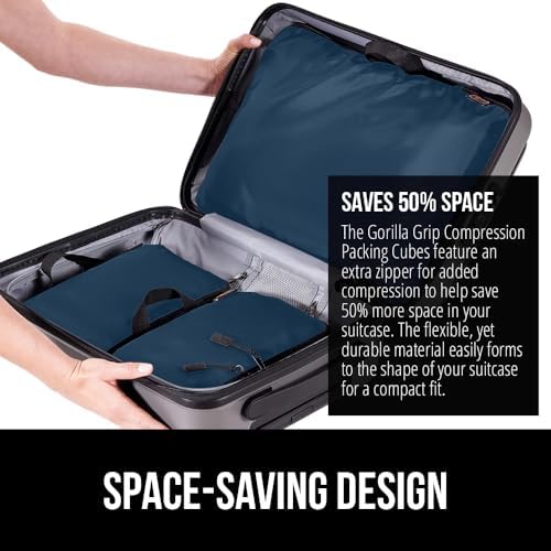 SAVE UP TO 50% MORE SPACE IN YOUR SUITCASE: make travel easier than ever; the Gorilla Grip Packing Cubes let you easily compress, organize and separate each type of clothing; space saving and flexible fabric allows you to neatly pack a suitcase without worry of items not fitting so you can make full use of your suitcase space