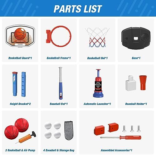 IDEAL GIFTS FOR KIDS – This 2 in 1 kids basketball and baseball toy sets are perfect for boys girls aged 3-8 as a birthday, Christmas, Thanksgiving, New Year’s gift. Your little one would be excited to receive this multifunction sport toys! Catch every suprise moments of your baby!
