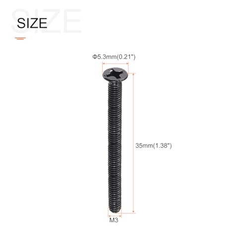 [2]: SPECIFICATION – Thread Diameter: M3, Total Length: 35mm/1.37″, Screw Head Diameter: 5.3mm/0.21″, Color: Black