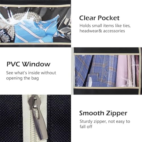 【Clear Window】Wardrobe bag carrier with 5.4″ wide square see-through window allows you to see which the garment is inside without opening the womens mens garment bag;