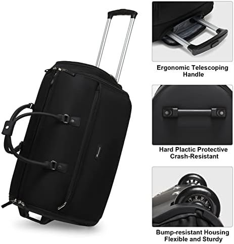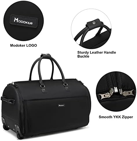 YKK ZIPPER, DURABLE & WATER RESISTANT: This Modoker rolling garment duffel Bag is made of scratch-resistant, anti-tear & water-resistant polyester fabric and equiped with quality YKK zipper – smooth and sturdy enough for zippering. And the ergonomic high-strength handle with buckle, strong & flexible telescoping handle in this rolling garment duffle bag will offer you an easier and more convenient trip.