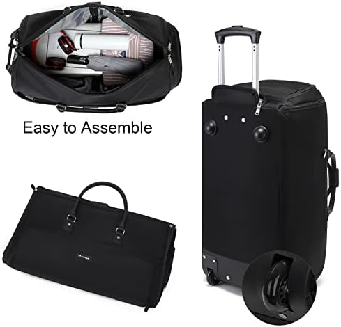 80L CAPACITY, 2-WHEELED GARMENT LUGGAGE: The dimension of this Garment duffel bag is 25”L × 14”W × 15”H with the large capacity of 80 L, and the unfolded size is 45”L×24”W. Smooth and durable wheels – the high-performance inline skate wheels have bump-resistant wheels housing. Support plate and anti-skid plate at the bottom can keep balance for the duffle luggage.