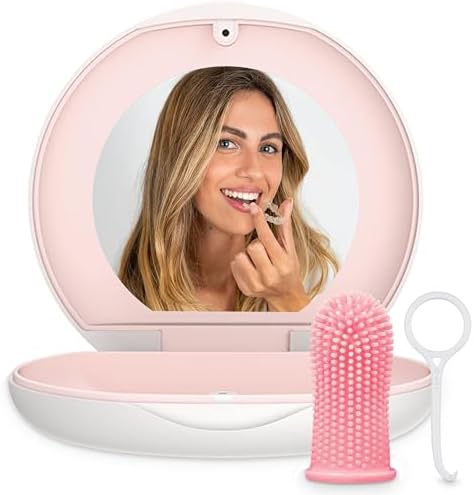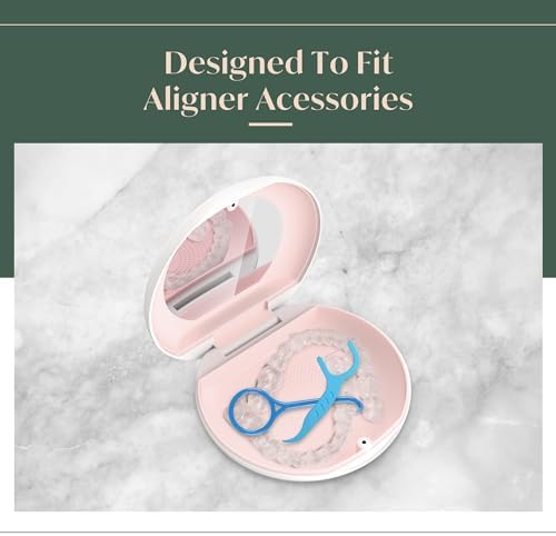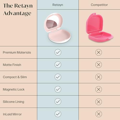 Built-in Mirror. Our retainer container case allows you to check for food in your teeth or aligners. You can also use our retainer cleaner case to apply rubber bands, and put in or take out aligners.