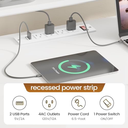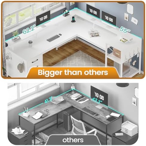 【User Friendly】The L shaped desk with drawers includes a built-in power strip with 4 outlets & and 2 USB Ports providing convenience for charging your gaming gear, printer, and phone. Don’t worry about not having enough power sockets. Also includes an on-off switch, thanks to the on-off switch, one-button power off to ensure safe electricity use, which strengthens security.