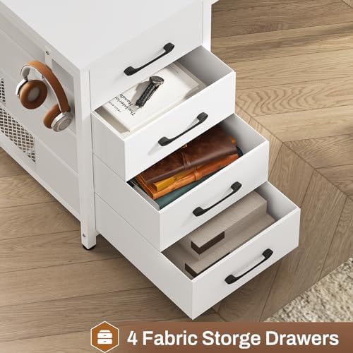 【4 Fabric Drawers】Coming with 4 fabric drawers to help store files, stationery, and other office supplies, this l desk has ample storage space for you to store unlimited office supplies and documents This solid-constructed computer desk could hold printers, scanners, fax machines, and any other office machines, keeping printer or scanner within easy reach of your desk to free up workspace.