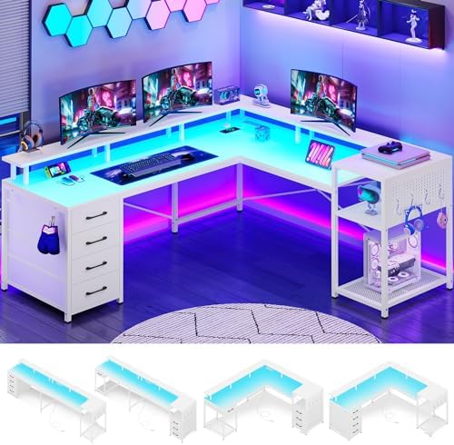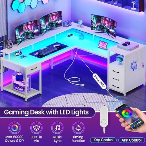 【Cool & Smart LED Light Strips 】The Sedeta l-shaped gaming desk comes with RGB LED lights, a remote control via APP, Over 60000 colors, and 29 flashing modes for you to choose from. LED light strip with music sync function, built-in sensitivity adjustable mic, led light color will change with the rhythm of the sound and music. With the timer function, just enjoy it smartly, and create a gaming and working atmosphere.