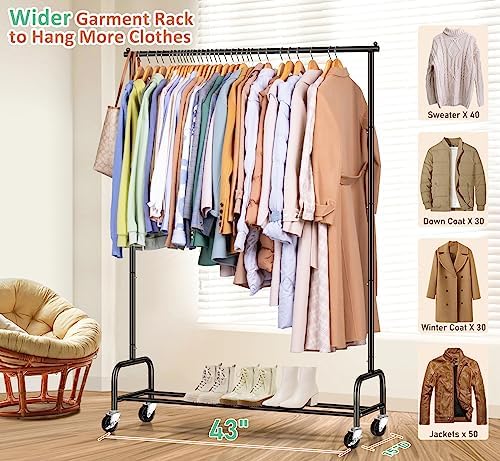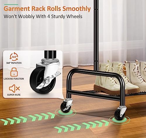 【Convenient to Move & Lock】Our cloth rack has 4 heavy duty omnidirectional casters make it easy to move the clothing rack to different rooms, the portable clothes rack easy to roll even fully loaded with clothes, for added convenience, also 2 of the wheels can be locked in place to keep the clothes hanging rack stand stationary, guarantee the safety of your family.