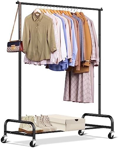 【Secure, Strong, and Stable】Heavy duty clothes rack use U-shape structure for stronger support, 25.4 mm dia. all steel tubes, smooth welding point, make a sturdy clothing rack that holds up to 150lb load, clothes rack with wheels give your heavy clothes stable support for years to come, you can say goodbye to wobbly and bending garment racks for hanging clothes.