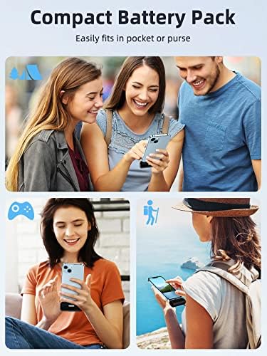 【For All iPhone and AirPods】Portable Charger has an integrated connector and battery, can charge all your devices with this one battery pack charger, it’s about the size of a car key weighs 92g, you can charge while gaming or calling. Widely compatible with iPhone 14 14 Pro Max 13 13 Pro Max 12 12 Mini 12 Pro Max 11Pro XS XR X 8 7 6 Plus Airpods and so on.