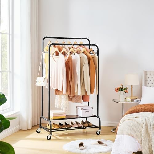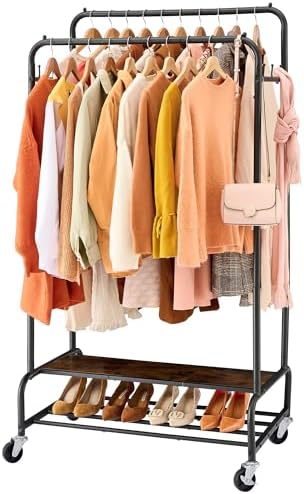 🩳【Sturdy and Durable】Made of high-strength metal, the thick layer of baking paint on the surface prevents the garment rack from rusting and corrosion. Sturdy structure can easily accommodate heavy winter jackets and coats weighing up to 242 pounds.