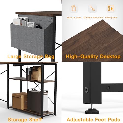 Small Desk with Spacious Storage – The small desk offers 2-tier under desk opening shelves to help organize books and files, yet its small size and corner design fits perfectly into corner space, which is a perfect solution to maximize limited workspace.