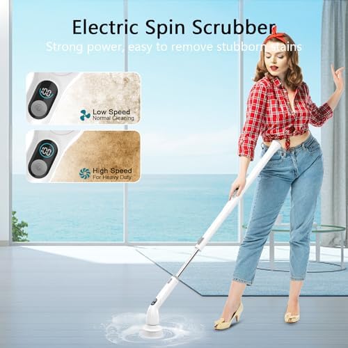 ✅【Powerful & Efficiency】The internal motor drives the rotating brush head to rotate at a high speed up to 450RPM±10%, can help you easily clean your entire house,especially when used with a cleaning agent, it can quickly clean stubborn stains and make entire house look new! Perfect for bathroom,bath tub,stone tile floor,grout,grooves,Toilet & etc.