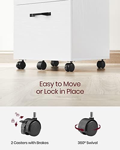 [Lockable, 360° Swivel Wheels] Five 360° swivel wheels allow you to move this filing cabinet around with ease. The 2 front wheels are lockable to keep the cabinet in place when stationary and the fifth wheel on the bottom drawer adds to overall stability