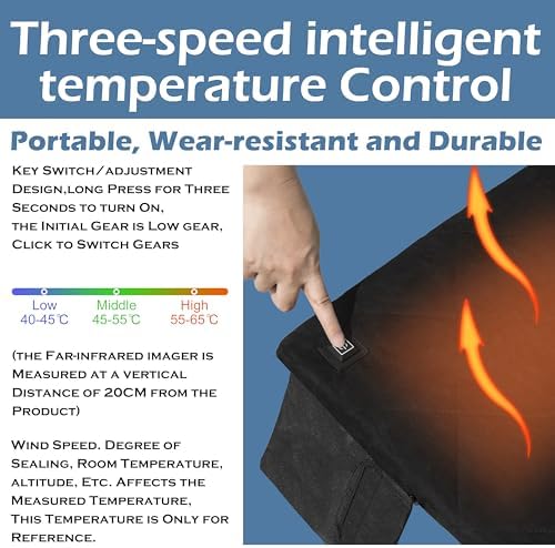 【SAFE LASTING WARMTH】— Use a 10000mAh battery, which can provide up to 3 to 10 hours of heat. One-key adjustment of 3 levels of heating, (High temperature: 3:00 – 4:00 hours) – (Medium temperature 4:00 – 6:00 hours) – (Low temperature: 6:00 – 10:00 hours) is convenient and intelligent.